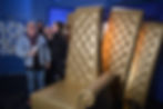 This awesome custom made dairy chair was made just for the season 7 of Big Brother Canada. Custom upholstery with one arm and peacock style paneled back. We complemented the arm with bronze decorative nails. Upholstered panels with designer vinyl and hand tufted crystals for this luxury unique look.