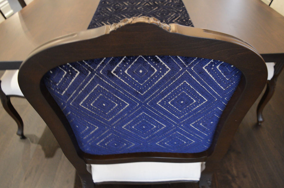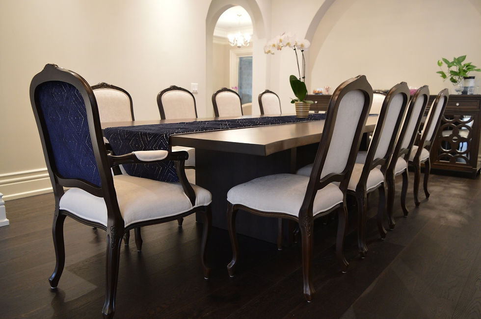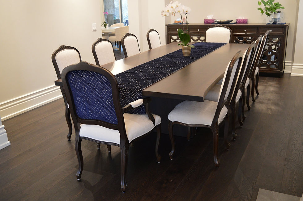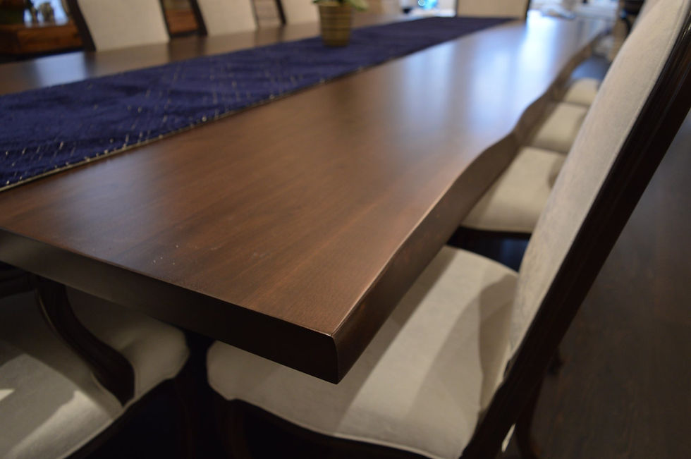 table measuring just over 125” long fits 10 chairs with ease. this particular walnut table was stained to our clients specification.